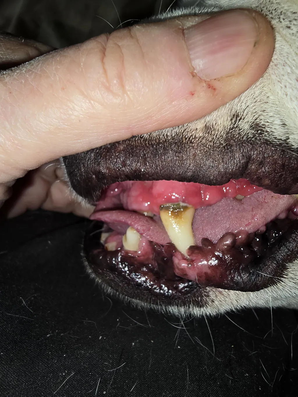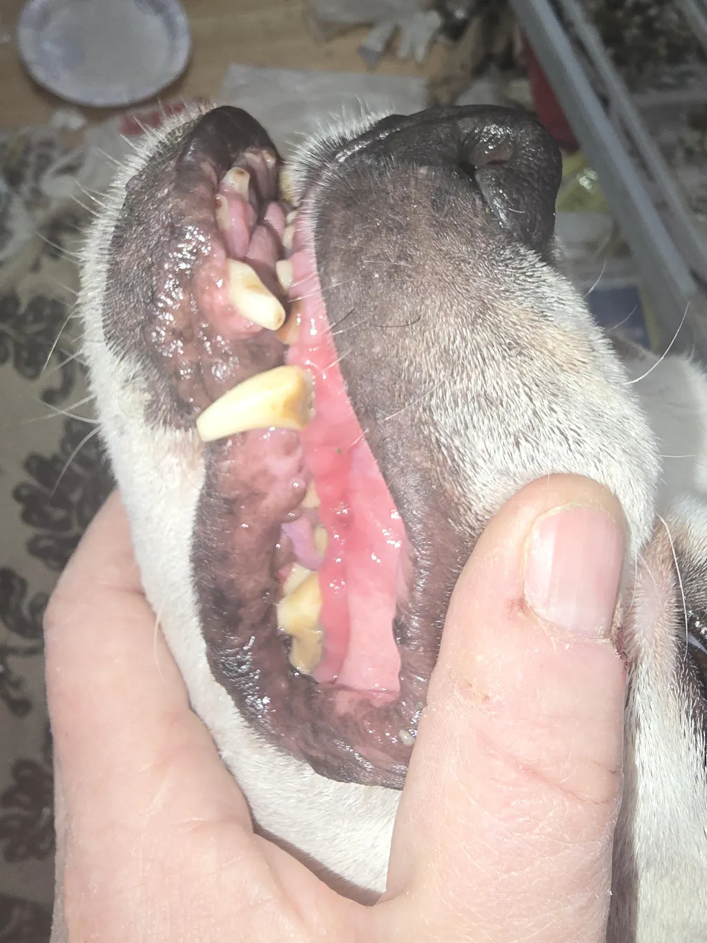 So my boxer mix dog has terrible teeth. She was a rescue she's about 10 years old her teeth are very worn down, but there's a lot of plaque. And her gums are always so red. The vet says she's okay she's not in pain but I want it to be better. But I'm hesitant to put her under anesthesia for cleaning. I came across petmie at the farmers market and I thought well I'll give it a try. The creators told me if it doesn't work bring it back even if the jars empty will be here next week and we'll give you your money back. Well I thought supplements always take longer than a week usually at least a month. I did not expect to see a difference not in a week. I took before pictures and then a week later I was getting ready to leave the house and I thought well let me go ahead and take a picture and I can at least show progression as we go. I couldn't believe the difference! after one week I would say 50% decreased redness. I went back for more and got different varieties for my other dogs. Also I love that the owners and creators of the company are veterinarians themselves. They have a really good understanding of nutrition and everything they say aligns with what I've learned through the years about processed kibble. I was describing my other dog and without me even mentioning it they knew that he was an anxious dog and they made a recommendation of one of their products. They are always open to my questions and they work really hard to help me find the right mixture for each of my four dogs